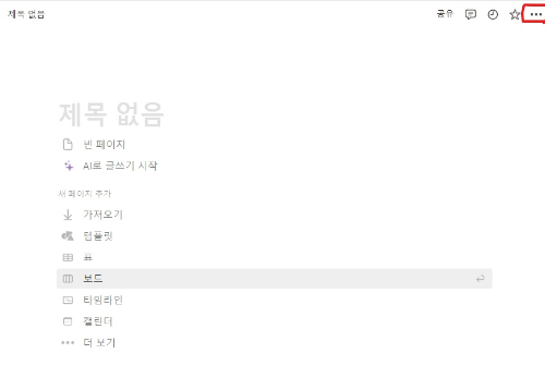 페이지에서 상단 오른쪽의 점 세개 버튼을 클릭해봅시다.