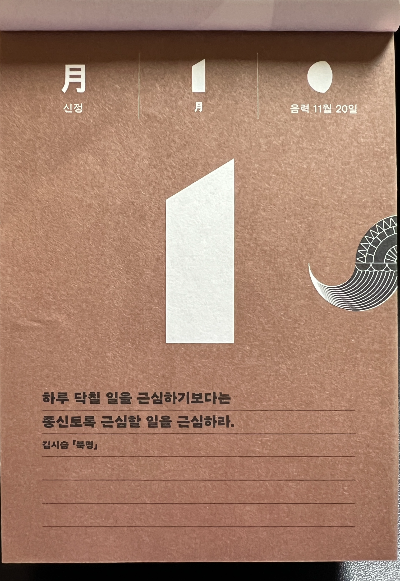 아무튼 일력은 달 전체가 나오는 달력과는 다르게 하루 하루 일마다 장이 있다.