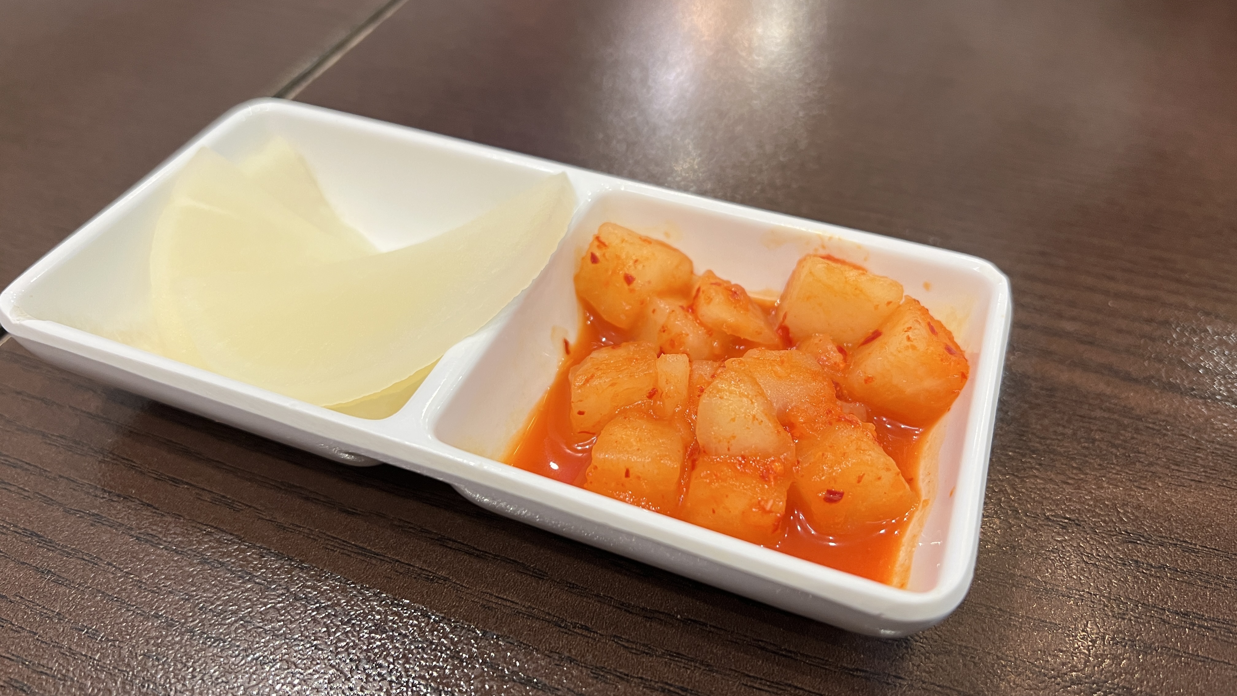 반찬으로는 단무지와 깍두기가 나오는데요.