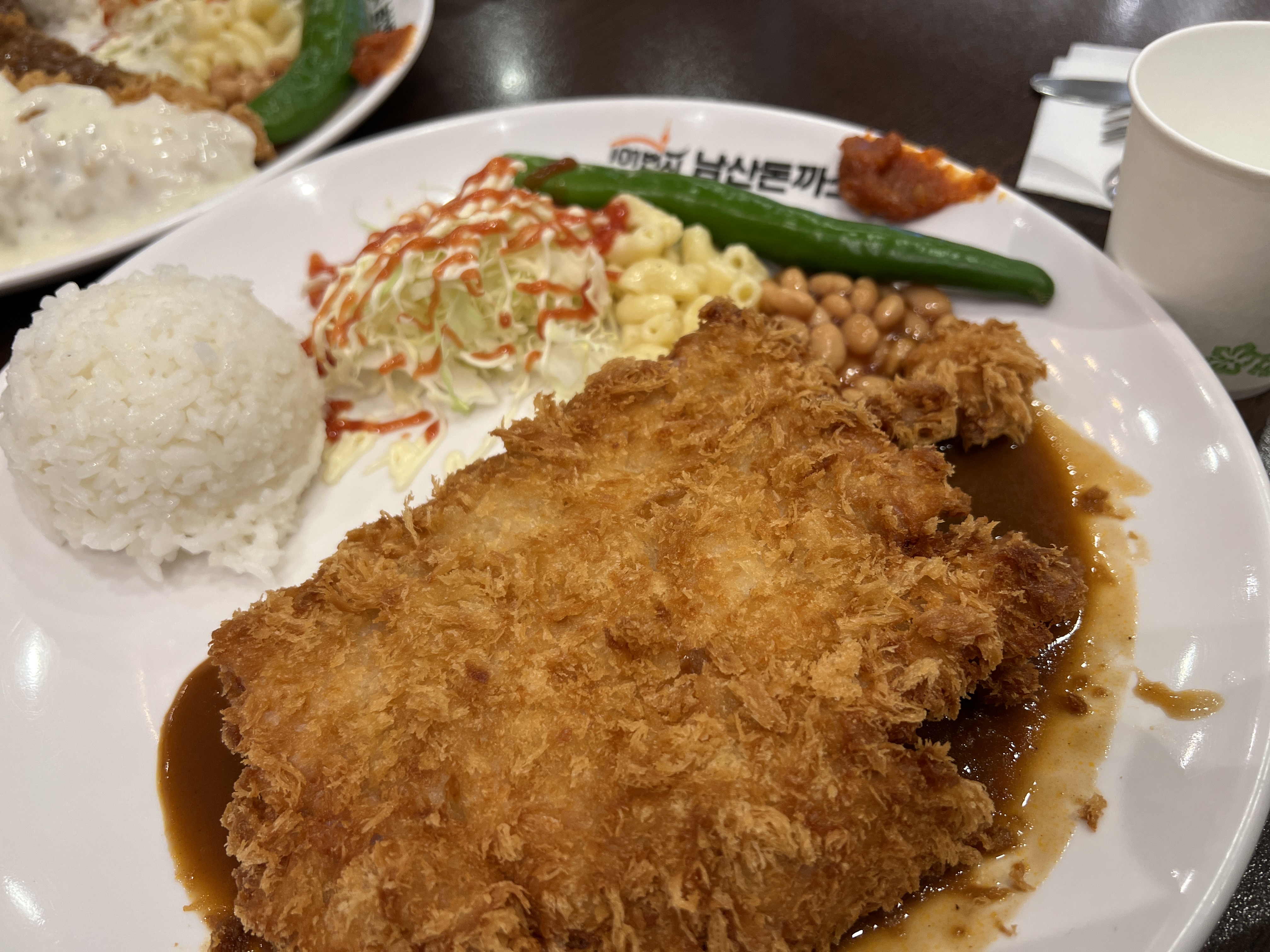제 치즈돈까스는 왠일인지 쏘스를 뒤집어쓴게 아니라 바닥에 깔아서 나왔는데 원래 이런걸까요?🤔🤔🤔