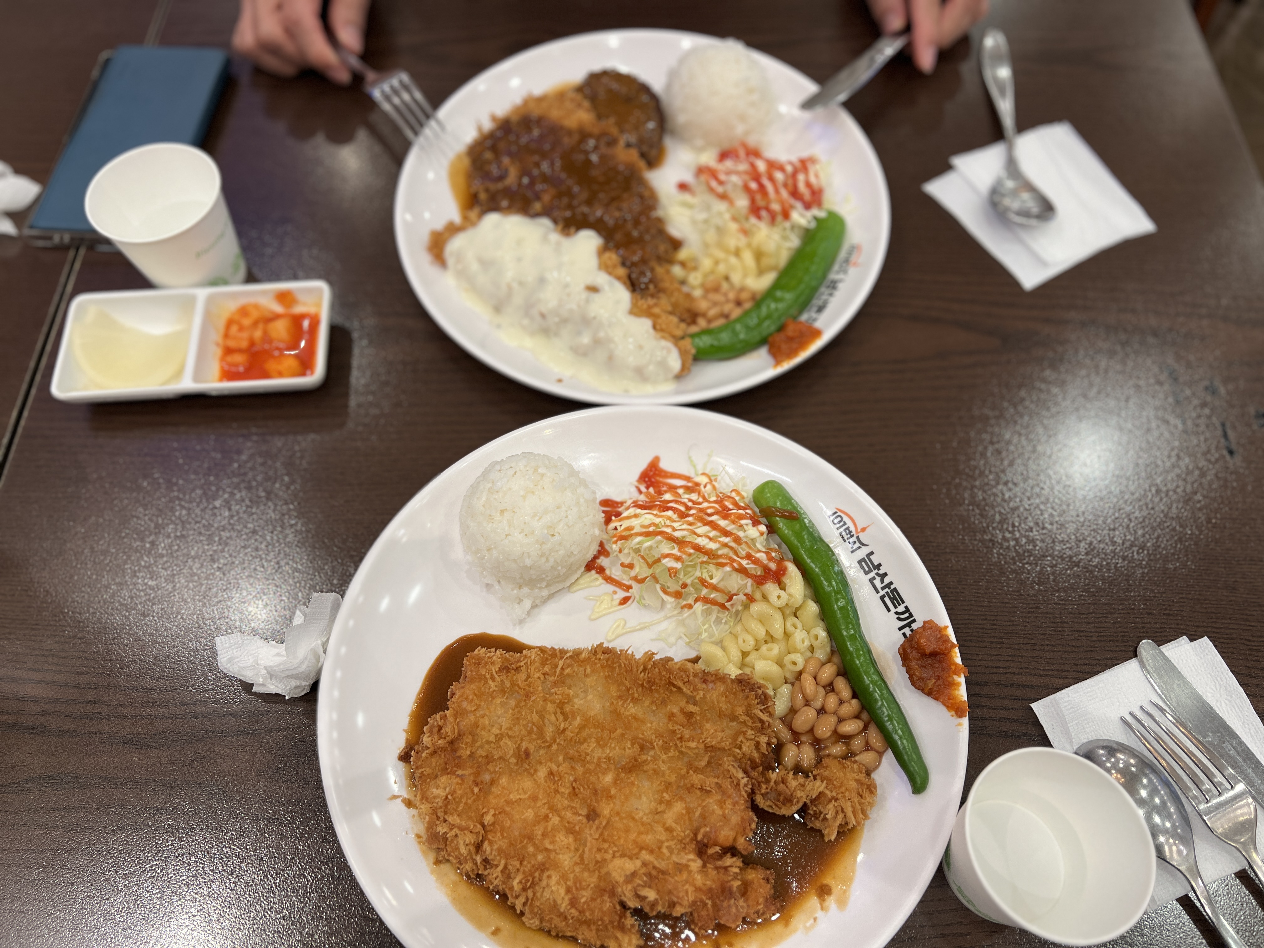 모듬 정식은 각각 다 맛있었구요. 제 치즈 돈까스도 보기와는 달리 치즈가 잘 늘어나고 맛있었답니다.